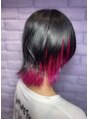 ブリーチ1回から臨めるショッキングピンクッ!!王道の黒との組み合わせはV系感も出せてトレンディ!上は次も明るく出来るダークグレーで染めたぞッ!