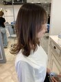 「韓国風顔周り小顔レイヤーは、ひし形シルエットで小顔効果抜群。顔周りに動きを出すレイヤーが自然な立体感をプラスし、くびれヘアが大人っぽさと柔らかさを演出。スタイリング次第で清楚にも華やかにも仕上がります。」