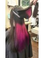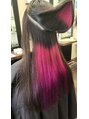 インナーカラー。.ブリーチ部分に、カラートリートメントの、バブルガムパープルとトータリーレッドを、オンカラーしました!