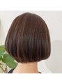 まとまり感を出しながら襟足はスッキリとしたショートボブスタイル。癖がある方はストレートをかけるとツヤ感アップ!オイルで仕上げてます。