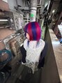 ピンクと青のセクションカラーです。しましまでつくってます。
