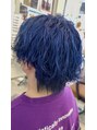 波巻きパーマ後 ブリーチしてネイビーブルーに染めました。
