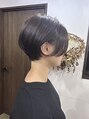 黒髪からのワンカラーです。赤味をほどよく、優しくおさえたグレージュカラーです。正面以外から見た時もバランスよく似合わせます。