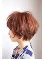 ショートボブのスタイルにカールアイロンで毛先にのみ動きにかけた外ハネのスタイルです。カラーは8トーンのローズピンクブラウンでツヤ感のある赤系カラーをチョイス。ストレートでは物足りないという方にオススメのスタイルです。