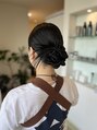 お祭りヘアセット♪タイトにまとめてつつ、ねじりを重ねて華やかさを演出しました!お祭りや浴衣ヘアにもおすすめです☆シンプルな髪にアクセントを効かせたいまどきスタイルです(^^)