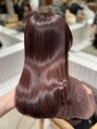 ブリーチで明るさを出した髪に深みのあるカシスカラーをオン!透明感とツヤ感が際立ち、大人可愛い雰囲気に仕上がります。光の当たり方で色味の変化も楽しめる人気カラーです。