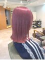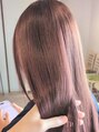 ツヤ感際立つピンクブラウン。やわらかい発色にほんのりくすみを効かせることで、大人っぽい落ち着きもプラスしました。光の角度によって柔らかく透けるような質感が出るので、ストレートでも重たく見えず上品な印象に。色持ちがいい点も、おすすめです。