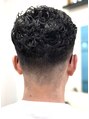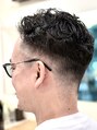メンズパーマいつもご利用頂いている方。髪の毛は細くて柔らかくペタッとしてしまういわゆる猫っ毛。今回は刈り上げ部分を薄めにして短くしてセットも簡単なるよう仕上げています。