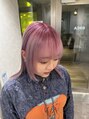 前処理をしてケアをしながらできる限りの色素を抜き根元は濃いめのピンクで毛先はホワイトピンクにした桃カラー!