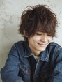 センターパートから自然に流れる前髪と、無造作なウェーブが魅力的なマッシュカット。レイヤーを入れ、ラフな動きと軽やかさを演出。ダークトーンで落ち着いた印象ながら、毛束感でこなれ感もプラス。ワックスを揉み込むだけで決まる簡単スタイリング。