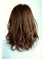 Aラインシルエットのセミロングスタイルです。バックはほぼワンレングスですがトップと顔まわりはレイヤーが入っていますのでカールによるラフな動きが出やすいスタイルです。デジタルパーマを前頭フォワードリバースと交互に巻いてつくっています。