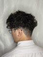 サイドを低めに刈り上げたツーブロックに、トップは長さを残して波巻きパーマをプラス。柔らかいカール感が立体的な動きを生み出し、ほどよいラフ感と大人っぽさを両立します。ビジネスシーンでもカジュアルでも使える万能スタイルです。