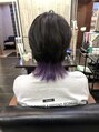 襟足にライラックのインナーカラーを施したセンターパートウルフです!