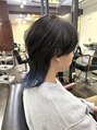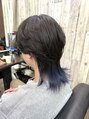 襟足にインディゴのインナーカラーを施したセンターパートウルフです!