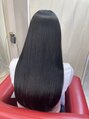 黒髪に戻し中のお客様。今回もカラーエステで栄養分をしっかり入れています。年に一度の美髪矯正でうねり広がりのないサラ艶ロングヘアになりました。初回ご来店時は肩下ぐらい。今まで諦めていたロングヘアーになりました。誰もが憧れる黒髪ロングです。