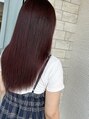 なるべく赤を強くとオーダーいただいたので今の髪からワンカラーでなるべく濃くいれました。ビフォー状態、髪質によって色の入り方は異なります。