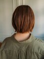 全体的にボブスタイルに顔まわり、表面にレイヤーを入れ重すぎない雰囲気に。カラーは明るめのオレンジ寄りのブラウンで黒髪の思い雰囲気を明るくすくことで軽減してくれます。前髪は少し長めで雰囲気のあるスタイルに。