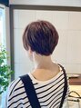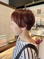 大人かわいいベリーショート。オレンジカラーでツヤを。前髪のみにハイライトをいれることで遊び心をプラス。