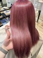 ブリーチカラー根本を濃いめにすることで色落ちも考えたピンクカラーに!