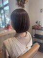 暗めにターンダウンして、赤味を削ったグレージュカラー顎下ラインで毛先が勝手に丸くなるボブ◎