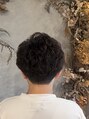 サイドはツーブロック、襟足は刈り上げでスッキリ。全体をゆるっと動きが出るパーマをあてて毎日のセットを楽ちんに◎