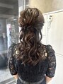 サイドにねじり編みをプラスした華やかな低めのハーフアップ。結婚式参列などに人気です*全体をしっかり巻いた後にワックスとオイルを混ぜてスタイリングすることで艶を出しながら長時間スタイルをキープすることができます○