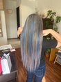 ダブルカラーとシールエクステ◎ベースはエクステに合わせてシルバーカラーに!持ち込みのシールエクステでハイライトにブルーを入れました!エクステはメニューにないのでお電話にてご相談ください。