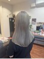 ご注文が多いホワイトグレージュカラー!元々ハイトーンのブリーチ毛なので、リタッチをブリーチして薄めにホワイトグレージュをONカラーしてメンテナンス!ブリーチの回数は、髪質と履歴によって異なりますのでご相談ください。