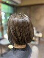 ヘナと草木染め白髪を活かして草木で染めています。ボブがとってもお似合いです。以前に入れた部分ハイライトも残っているのでヘナと草木染めで明るめの印象を与えてくれます。