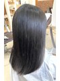 黒髪セミロングストレート。縮毛矯正ストレートで広がりやうねりを整え、質感調整でおさまりよく。乾燥対策にヘアミルクやヘアオイルでツヤのある仕上がりに。