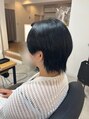 ショートウルフサイドは前下がり、耳が見えるくらいまでカットしました。他の方とはなかなかかぶらないようなヘアスタイルとのことでウルフでも短めに仕上げました!