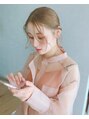 柔らかいアッシュベージュのカラーに、シースルーぱっつんの前髪で柔らかく抜け感を。顔まわりのカットで韓国風のくびれヘアに。大人っぽいナチュラルな女性らしいヘア。