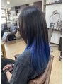 トップは染めずにインナーを鮮やかなブルーカラーに!ブルー系のカラーはしっかりと色を抜いた方が色落ちもきれいです。