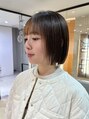 丸みのない顎下のボブスタイル。可愛くなりすぎない大人っぽいスタイルです。少しゆったりとした余裕のある長さで結ぶことも可能な長さですまとめることをされる方にもオススメのスタイルです