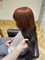 オレンジベースに濃いめブラウンをアクセントに!前髪に縦に入れたデザインがいまっぽポイント☆ブリーチ1回~