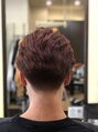 手ぐしでスタイリングOK♪フェザーパーマにレッド系の明るめカラー。