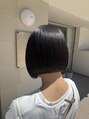 襟足ギリギリのラインのボブはあごラインくらいの長さになるので頭も小さく見えて小顔効果もあります^ ^少し個性的にしたい方は前上がりのボブで顔まわりの髪の毛を短くする事も可能です☆