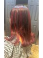 ミディアムヘアーの長さで作るレッドバレイヤージュで黒の陰を作ってあげることで色のコントラストをつけることによって色味がチグハグにならずスジ感も出せて色んなバリエーションがあるのもおすすめです!!