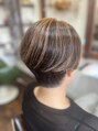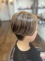 ショートスタイルにさりげなく個性をプラスするアンブレラカラー内側は落ち着いたトーンで上品に、トップに明るめカラーを乗せて大人女性の遊び心を演出します。髪を触る度に表情が変わるので、分け目やスタイリングで遊んでもOK