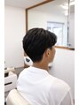 センターパートでもみあげと襟足の部分だけ少し薄くして自然な仕上がりにしています。