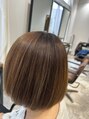 トップを中心にハイライトを入れ白髪を馴染ませて目立たなくするスタイル ハイライト後、根本をリタッチしてシャンプー台で毛先にカラー剤を馴染ませるのでダメージを最小限に抑えます