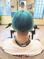 ターコイズ、かりあげ、ボブ。ブリーチ2回必要です。