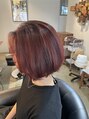 バーガンディ色をイメージした、秋色ボブ。艶感と深めのレッドカラーが素敵です。褪色の過程もピンク色っぽく抜けていくので、長くカラーデザインを楽しめるかと思います。※今回は前回までのベースの明るさを活かしているので、ブリーチ無しのワンカラーでOK
