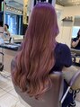 根元のバージン毛が1.5センチ伸びて4回ブリーチ毛のロングヘアのお客様で、根元ブリーチリタッチ後ラベンダーピンクカラーをのせました。光加減でパープルの発色が綺麗に映えてくれます!