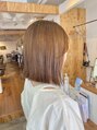 ブリーチなしコーラルブラウンカラー切りっぱなし外はねボブ岡山