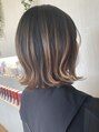 福山市美容室Caary人気 スタイリング簡単丸みボブ×インナカラー