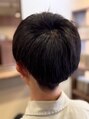 ノーセットマッシュ系ショート、丸みを残しつつサイドと襟足をすっきり整えた清潔感あるスタイル。自然な前髪が柔らかく知的な印象を与える万能な髪型です。
