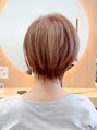 くせ毛の柔らかさで顔周りを包み込むようにカットをして顔をキュッとさらに小さく見せます横顔も鼻先から後頭部までの奥行きを出すシルエットが首を細く綺麗に見せます