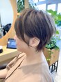 頭のハチのボリュームを抑えてトップにボリュームと動きが出るよう毛量調整をしてカットしてます。トップに少しだけ動きをつけるだけでパーマのような仕上がりになります