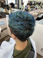 根本は黒髪→金髪→青になる様にグラデーションで仕上げたONE OK ROCK タカ風ヘア